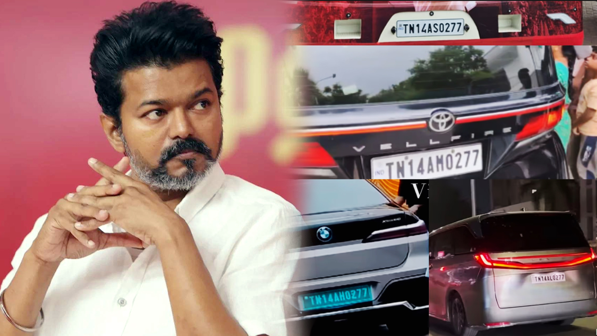 அதாவது விஜய் பயன்படுத்தும் வாகனங்களில் 0277 என்கிற நம்பர் தான் இடம்பெற்று இருக்கிறது. இதில் அவரின் BMW electric காரில் TN 14 AH 0277 என்கிற நம்பரும், Lexus LM காரில் TN 14 AL 0277 என்கிற நம்பரும், வேல் ஃபயர் காரில் TN 14 AM 0277 என்கிற நம்பர் பிளேட்டும், மேலும், அவர் புதிதாக வாங்கி உள்ள பிரச்சார பேருந்தில் TN 14 AS 0277 என்கிற நம்பர் பிளேட்டும் இடம்பெற்று உள்ளது. இவை அனைத்திலும் 14-02-77 என்கிற நம்பர் தவறாமல் இடம்பெற்று இருக்கிறது.
