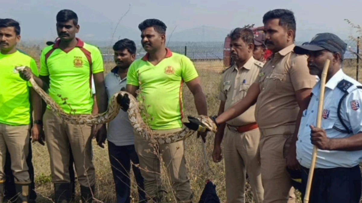 சோலார் கம்பெனிக்குள் இருந்த 7 அடி நீளம் மலைப்பாம்பு