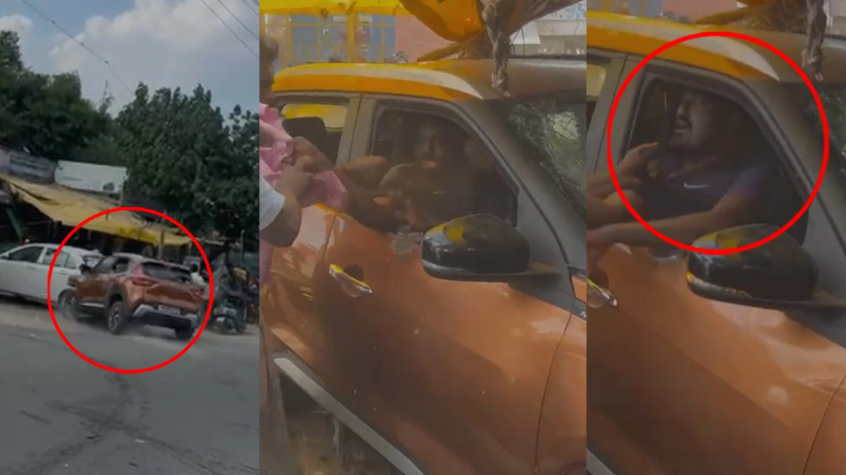 இந்த சம்பவத்தில் இரண்டு இளைஞர்களுக்கு கால் முறிவு ஏற்பட்டது. சாலையோரத்தில் நின்றிருந்த பொதுமக்கள் உயிர் காக்க அச்சத்துடன் அருகிலிருந்த கடைகளுக்குள் ஓடி தஞ்சம் அடைந்தனர். இதையடுத்து அங்கிருந்த மக்கள் காரை ஓட்டிய அந்த நபரை புரட்டி எடுத்துள்ளனர்.