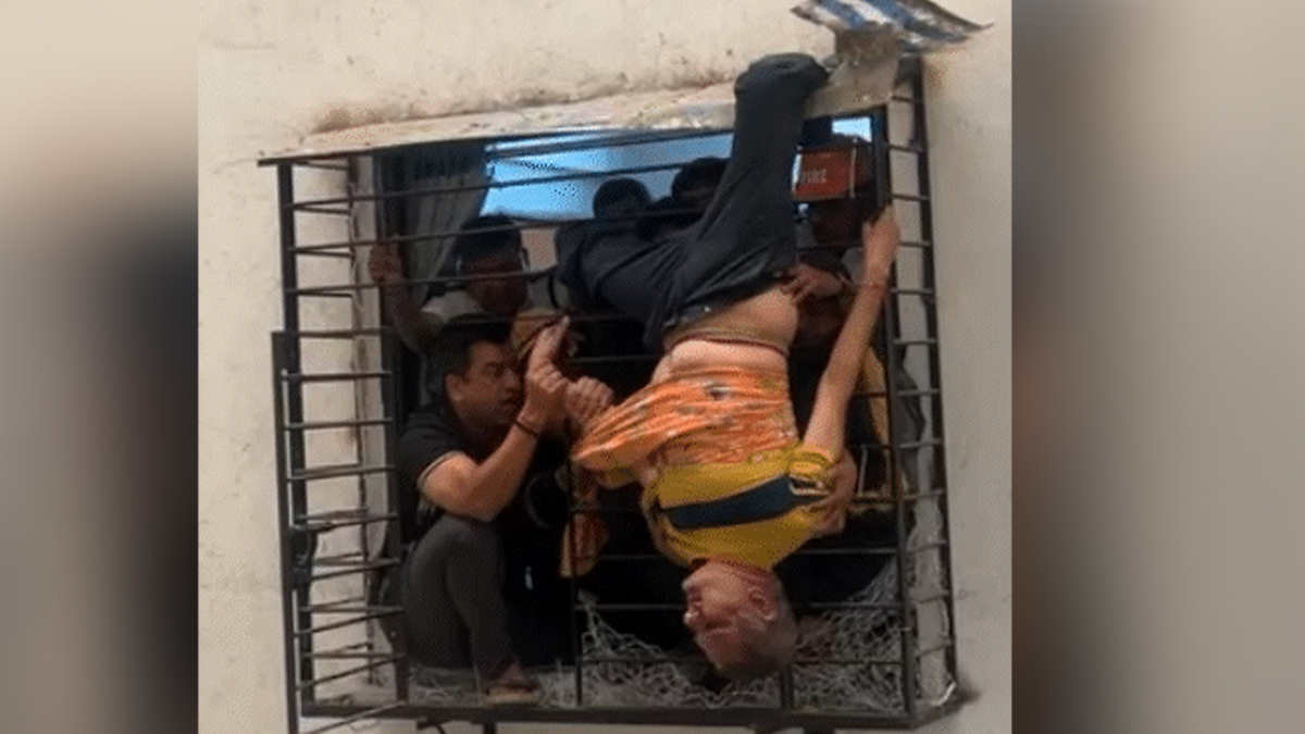 அப்போது தூக்கத்தில் 10-வது மாடியில் இருந்து கீழே உருண்டு விழுந்துள்ளார். கீழே விழும் போது, 8-வது மாடியில் வெளிப்புறமாக பொருத்தப்பட்டிருந்த ஜன்னல் கிரில் கம்பிகளுக்கு இடையில் அவர் சிக்கிக் கொண்டார். இதைக் கண்ட அக்கம்பக்கத்தினர் உடனடியாக அவரை மீட்க முயற்சி செய்தனர்.
