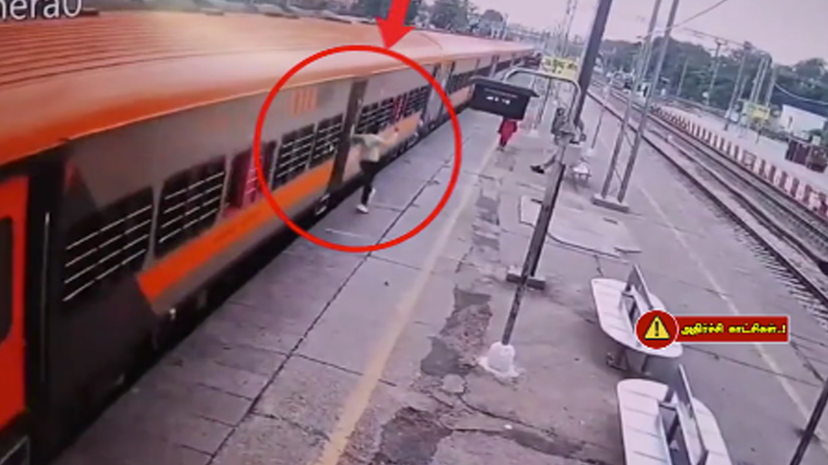 இதையடுத்து ஓடிவந்த ரயில்வே போலீசார் அந்த நபரை பத்திரமாக மீட்டனர். இதுதொடர்பான சிசிடிவி காட்சிகள் வெளியாகி அதிர்ச்சியை ஏற்படுத்தியுள்ளது.