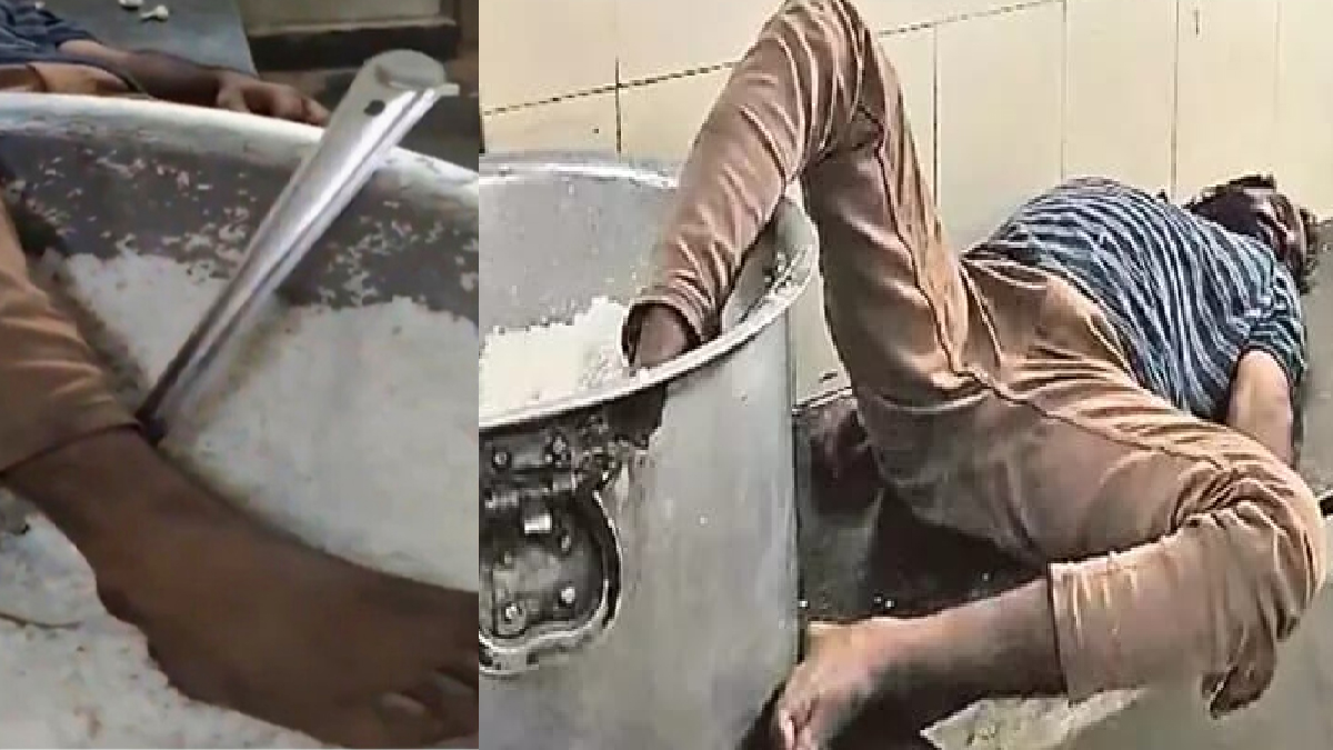 தெலுங்கானாவின் சங்கரெட்டி மாவட்டத்தில் உள்ள ஒரு அரசு பாலிடெக்னிக் கல்லூரியில் காவலாளி ஒருவர் சாப்பாடு செய்து வைத்திருந்த பாத்திரத்தின் மீது கால் வைத்து படுத்து தூங்கியுள்ளார். இந்த வீடியோ இணையத்தில் வைரல் ஆகியது.