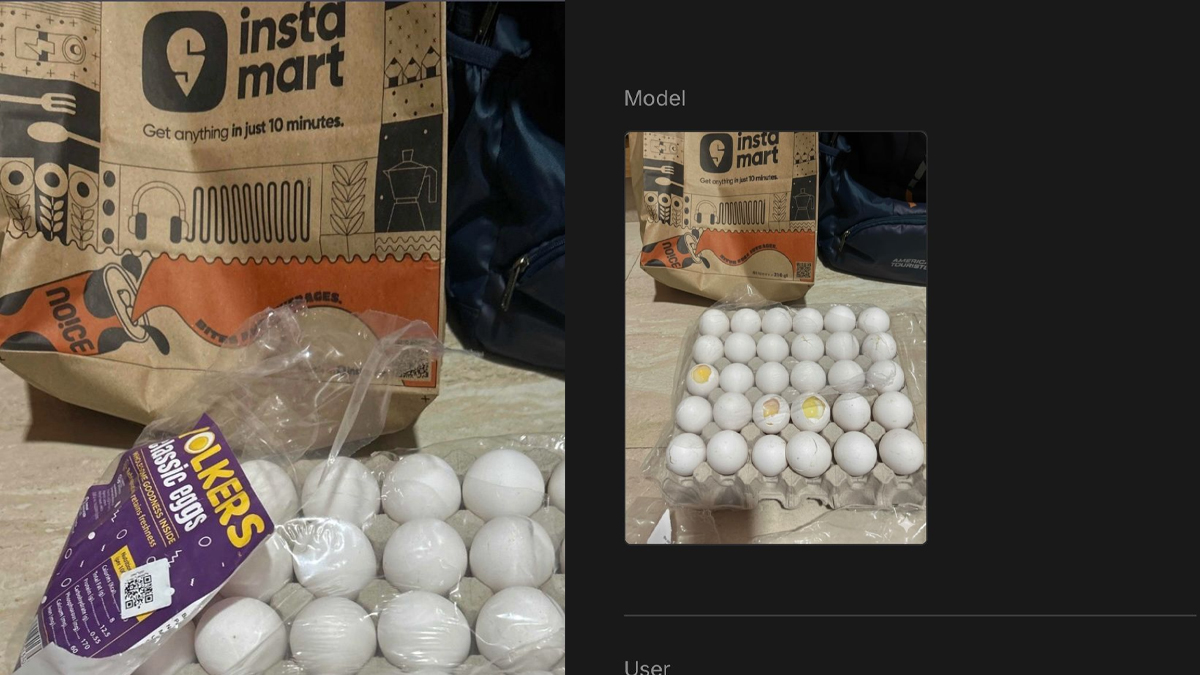 அதற்கு உதாரணமாக, ஸ்விக்கி இன்ஸ்டாமார்ட்டில் ஒரு ட்ரே முட்டை ஆர்டர் செய்த ஒருவர், அதில் ஒரு முட்டை மட்டுமே உடைந்திருந்தது. வழக்கம்போல புகார் அளிப்பதற்குப் பதிலாக, அவர் சற்று வித்தியாசமான முறையை தேர்வு செய்துள்ளார். உடைந்த ஒரு முட்டையின் படத்தை கூகுள் ஜெமினி (Gemini) AI-க்கு கொடுத்து, அதே படத்தை பல முட்டைகள் உடைந்ததாகக் காட்டும் போலி படமாக மாற்றியுள்ளார்.