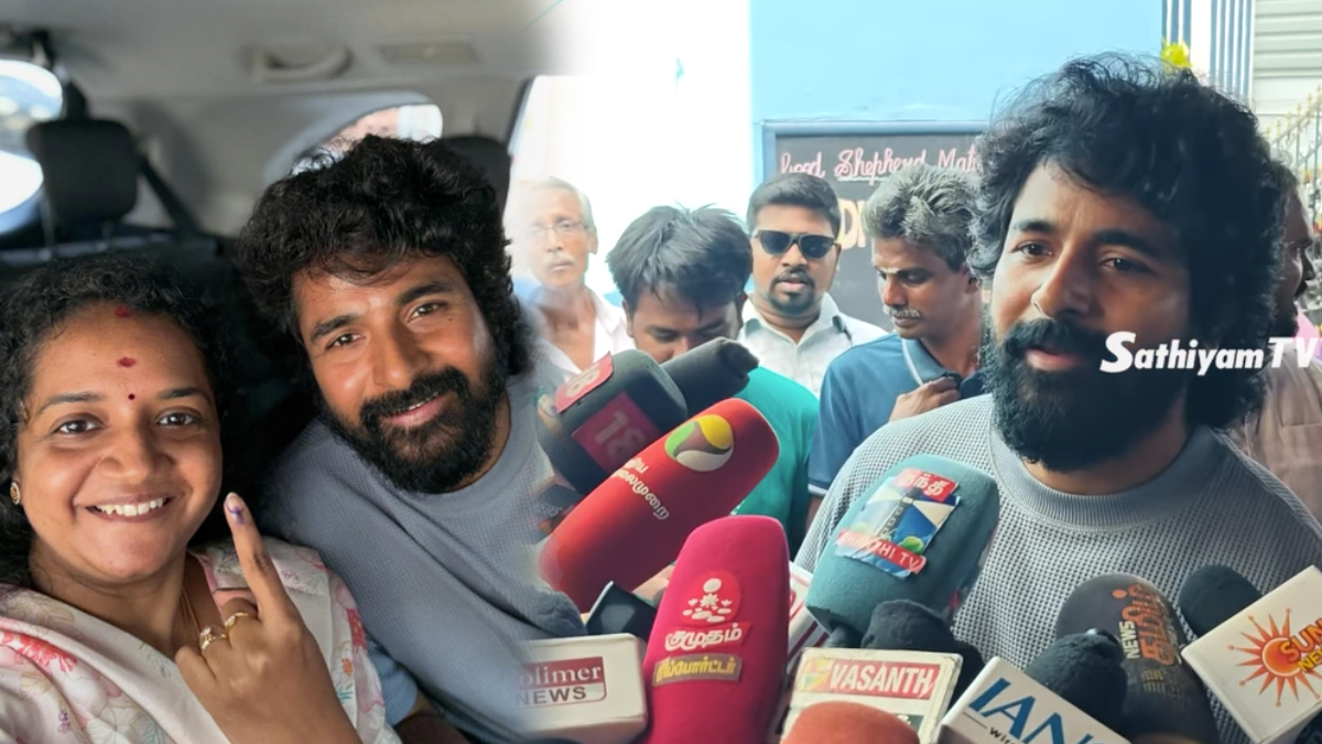 நடிகர் சிவகார்த்திகேயன் வாக்களிப்பு!!CinemaApril 23, 2026Updated: April 23, 2026 நடிகர் சிவகார்த்திகேயன் தனது மனைவி ஆர்த்தியுடன் சென்று வாக்களித்தார்.ShareFacebookXPinterestWhatsApp Related Newsநடிகை திரிஷா வாக்களிப்பு!! Sathiyam tv - April 23, 2026 கருணாஸ் மற்றும் கிரேஸ் வாக்களிப்பு!! Sathiyam tv - April 23, 2026 நடிகர் தனுஷ் வாக்களிப்பு!! Sathiyam tv - April 23, 2026 Latest Newsயாரும் ஓட்டு போட வரல! அந்த கிராமத்தில் நடந்தது என்ன? குலைநடுங்கும் திகில் பின்னணி? Sathiyam tv - April 23, 2026 நடிகை திரிஷா வாக்களிப்பு!! Sathiyam tv - April 23, 2026 01 மணியளவில் மாவட்ட வாரியாக வாக்குப்பதிவு சதவீதம்!! Sathiyam tv - April 23, 2026