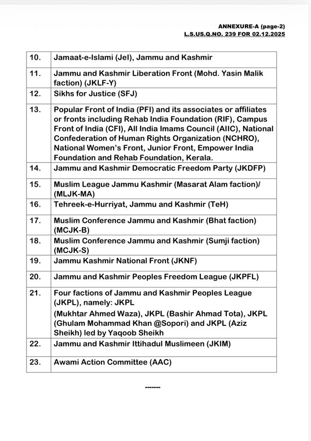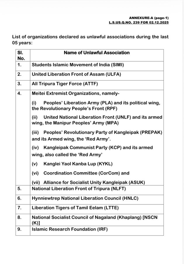 இந்தியாவில் உள்துறை அமைச்சகத்தால் தடை செய்யப்பட்டுள்ள 23 அமைப்புகள்
