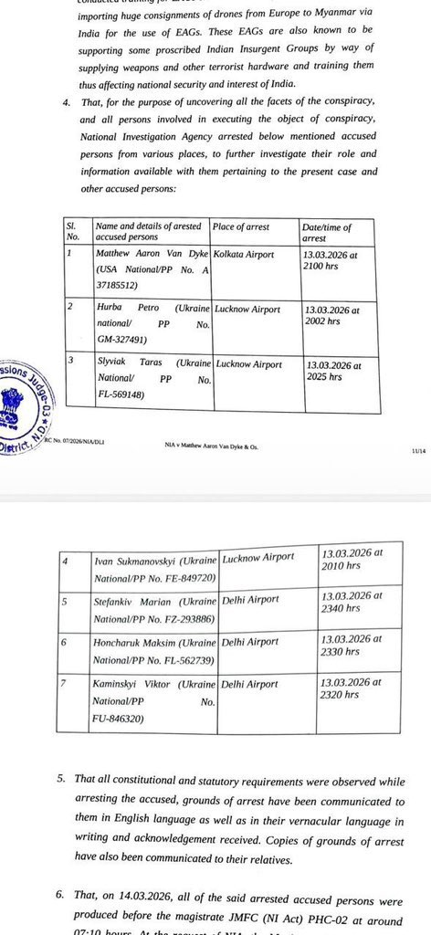 இந்தியாவில் ஆயுதக்குழுக்களுக்கு பயிற்சி அளித்த குற்றச்சாட்டின் கீழ் முதல் முறையாக வெளிநாட்டைச்சேர்ந்த 7 நபர்கள் தேசிய புலனாய்வு முகமையால் 14-03-2026 அன்று கைது செய்யப்பட்டுள்ளனர்.