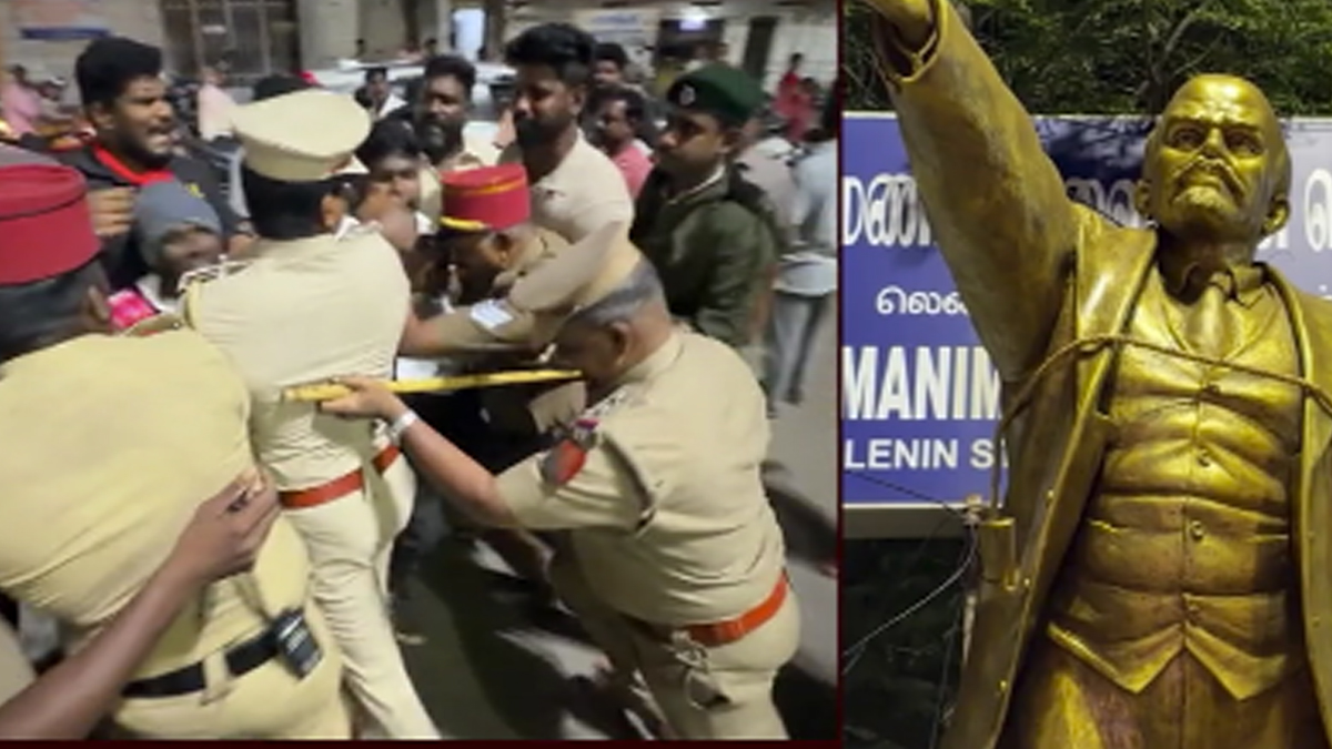 புதுச்சேரியில் லெனின் சிலையை அகற்றக் கோரி பாஜக போராட்டம், கம்யூனிஸ்ட் எதிர்ப்பு