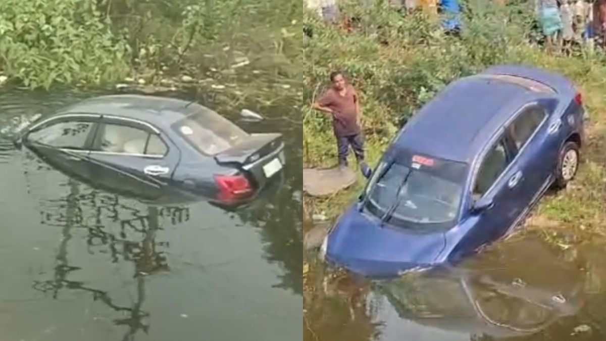 வாகனம் மீது மோதாமல் இருக்க பிரேக் பிடித்தபோது கார் கட்டுப்பாட்டை இழந்து சாலை ஓரம் உள்ள ஏரியில் பாய்ந்து விழுந்தது. இதில் காரில் பயணத்தை இருவர் அதிர்ஷ்டவசமாக உயிர்த்தப்பினர்.
