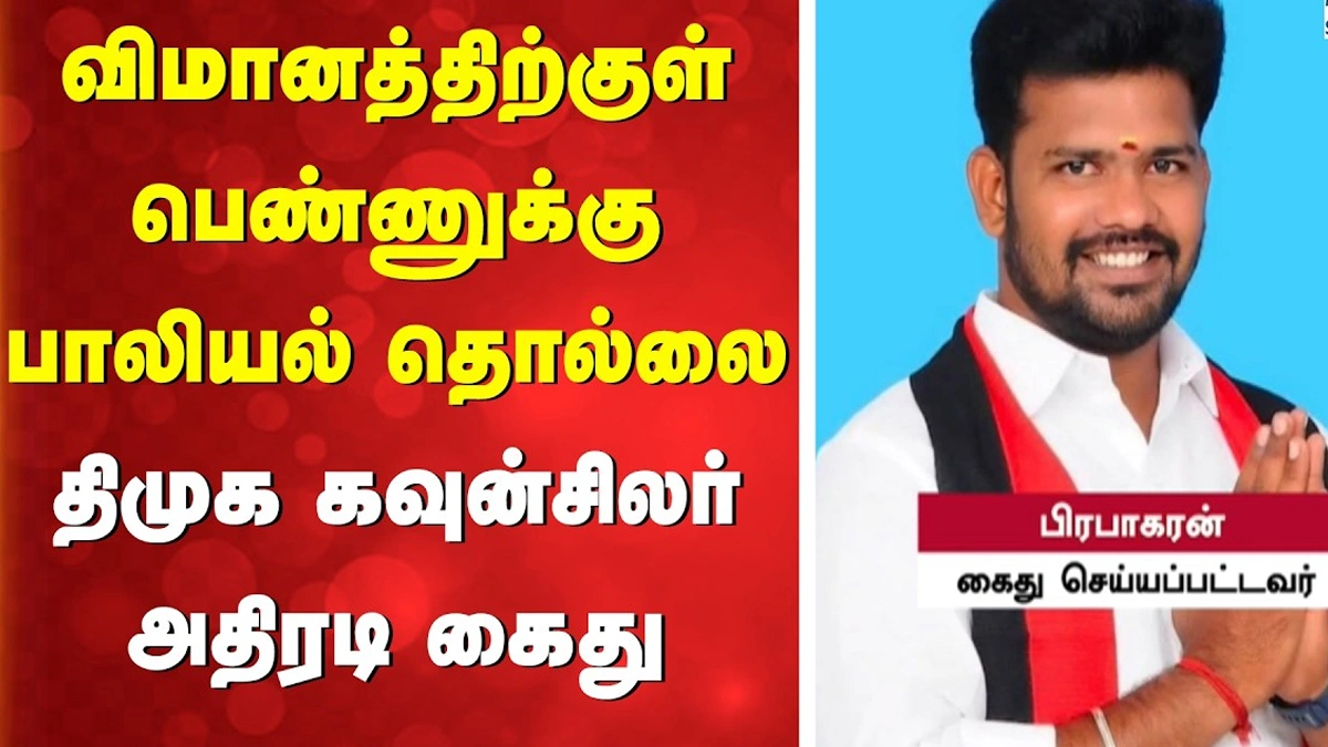 சென்னையில் இருந்து டெல்லி சென்ற இண்டிகோ விமானத்தில் திருவள்ளூரைச் சேர்ந்த தி.மு.க. பிரமுகரான பிரபாகரன் தனது நண்பரான தியாகுவுடன் பயணம் செய்துள்ளார். இந்த விமானத்தில் சென்னை அனகாபுத்தூரில் வசித்து வந்த 25 வயதான பணிப்பெண் வேலை செய்து வருகிறார்.