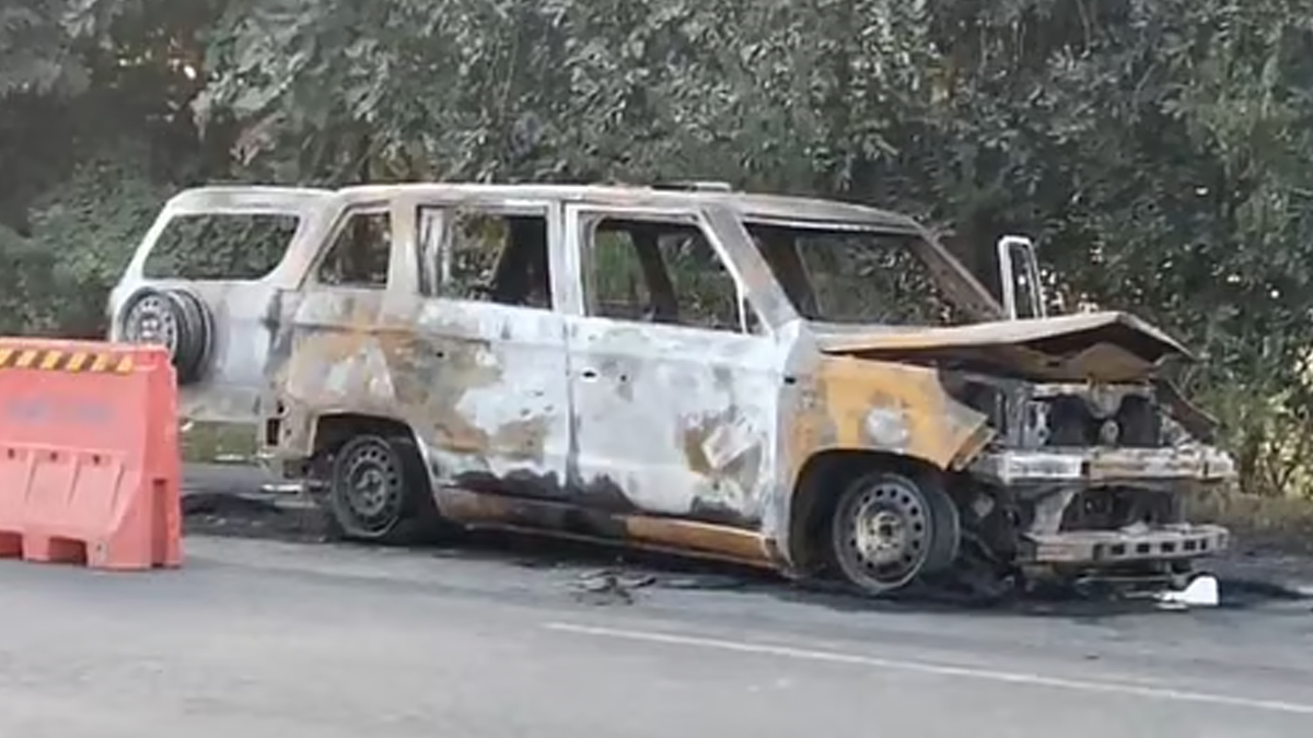 முன் இருக்கைகளில் அமர்ந்திருந்த ஓட்டுநர் மற்றும் குழந்தையின் பெற்றோரின் உறவினர்கள் காயங்களுடன் தப்பினர். ஆனால் பின்புறத்தில் இருந்த நான்கு பேரும் தீயில் கருகி உயிரிழந்தனர்.