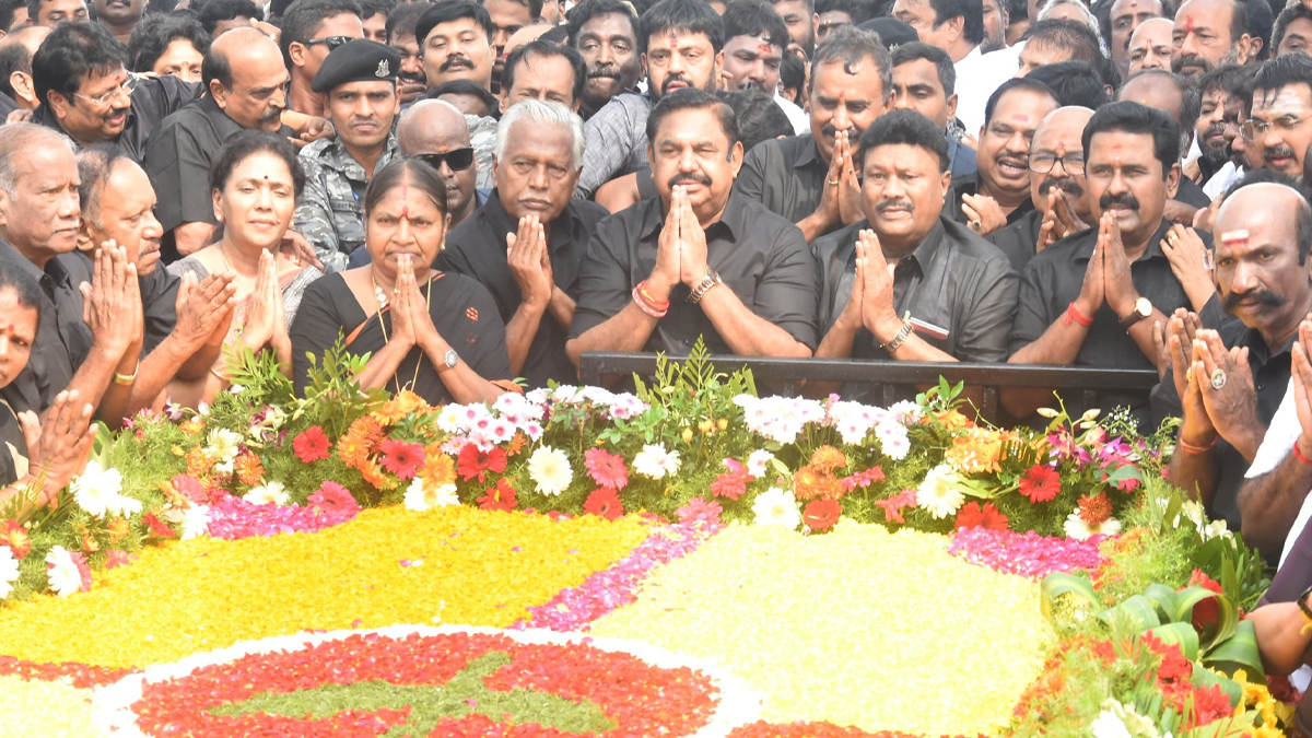 ஜெயலலிதாவின் நினைவிடத்தில் எடப்பாடி பழனிசாமி மலர்தூவி மரியாதை