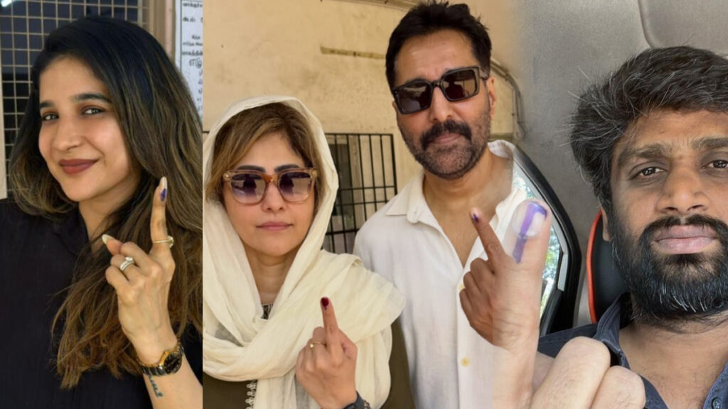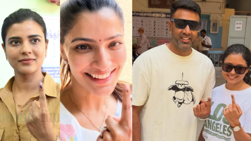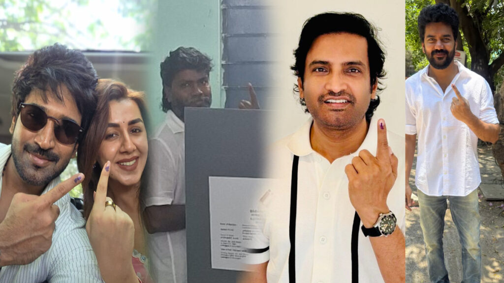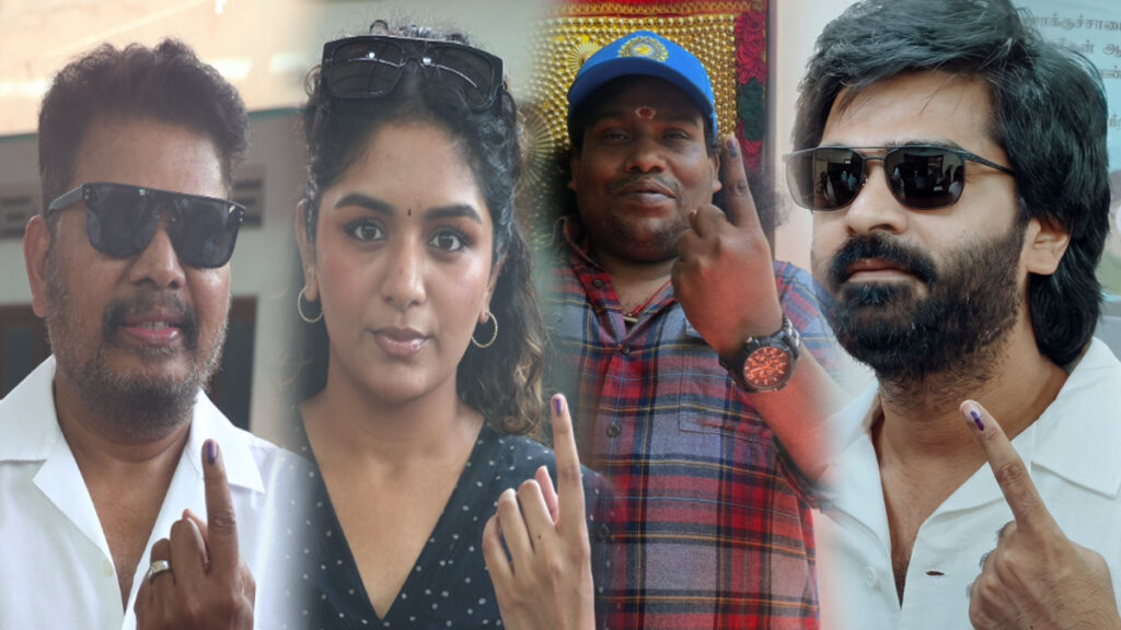 ஜனநாயக கடமை ஆற்றிய திரை பிரபலங்கள் ClicksCinemaApril 23, 2026Updated: April 23, 2026 தமிழ்நாட்டில் உள்ள 234 தொகுதிகளிலும் இன்று காலை 7 மணிக்கு வாக்குப்பதிவு தொடங்கியது. பொதுமக்கள், தலைவர்கள் மற்றும் நட்சத்திரங்கள் வாக்களித்து வருகின்றனர். அந்த வகையில் பல பிரபலங்கள் தங்களது ஜனநாயக கடமையை நிறைவேற்றினர்…ShareFacebookXPinterestWhatsApp Related Newsஜனநாயக கடமை ஆற்றிய திரை பிரபலங்கள்.. Sathiyam tv - April 23, 2026 நடிகை திரிஷா வாக்களிப்பு!! Sathiyam tv - April 23, 2026 கருணாஸ் மற்றும் கிரேஸ் வாக்களிப்பு!! Sathiyam tv - April 23, 2026 Latest Newsஇந்தியா வந்த கப்பல் மீது சரமாரி குண்டுவீச்சு! ஈரான் நடத்திய அதிரடி துப்பாக்கிச்சூடு! Sathiyam tv - April 23, 2026 சட்டமன்ற தேர்தல்; கூடுதல் நேரம்… அவசர அறிவிப்பு… Sathiyam tv - April 23, 2026 05 மணியளவில் மாவட்ட வாரியாக வாக்குப்பதிவு சதவீதம்!! Sathiyam tv - April 23, 2026