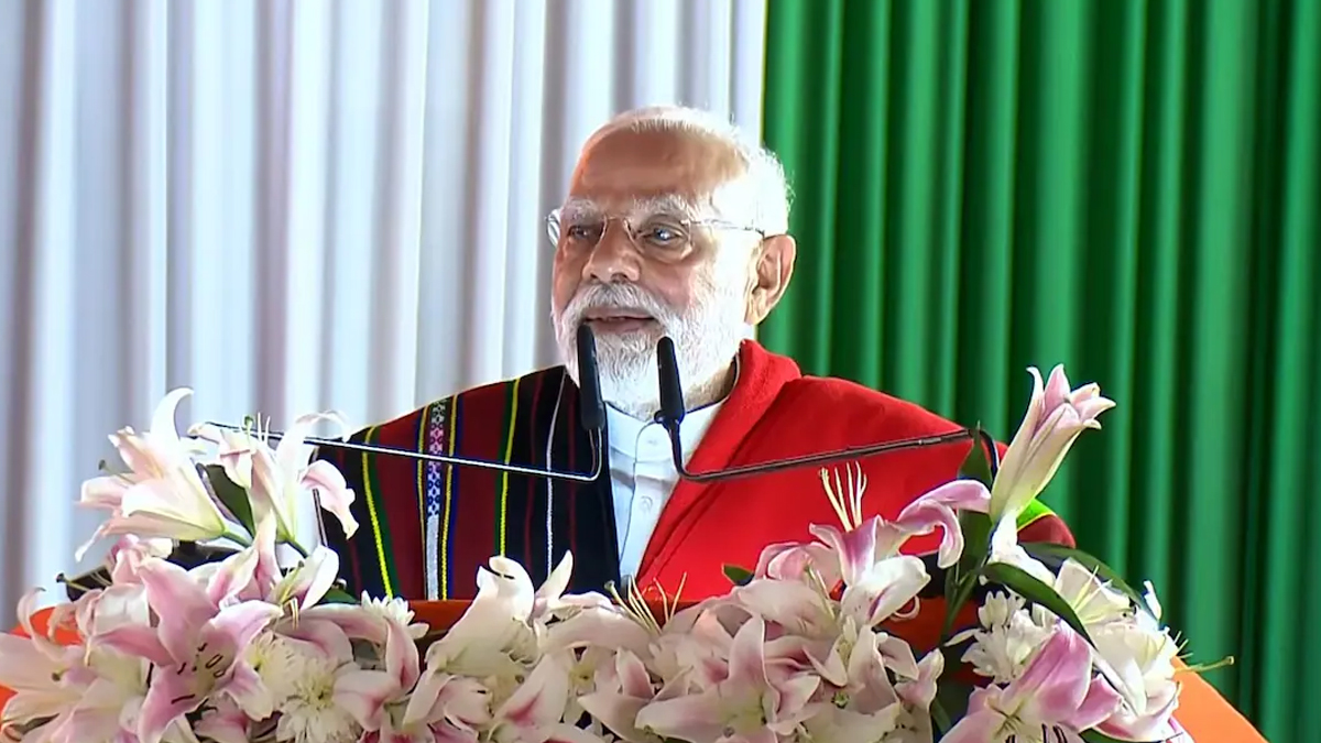 மணிப்பூரின் சுராசந்த்பூரில் பல்வேறு நலத்திட்டங்களைத் தொடங்கிவைத்த பிரதமர் மோடி, பொதுக்கூட்டத்தில் மக்கள் மத்தியில் உரையாற்றினார்.