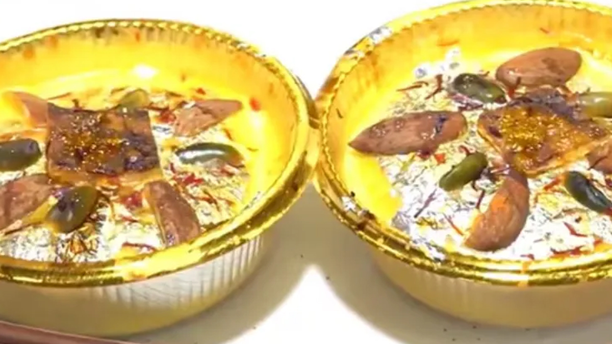 24 காரட் உண்ணக்கூடிய தங்கத்தால் செய்யப்பட்ட இந்த இனிப்பு ஆயுர்வேத மற்றும் சுகாதார நன்மைகளையும் கொண்டுள்ளது. இதுதொடர்பான வீடியோ சமூக வலைத்தளங்களில் வைரலாகி வருகிறது.