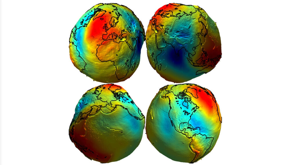 Geoid வடிவம் என்பது கடல்மட்டத்துடன் ஒத்துழைக்கும் போல ஒரு கற்பனையான முக்கோணம் போலும், தரையிலும் கடலிலும் ஈர்ப்பு விசை ஒரே அளவில் பரவவில்லை என்பதைக் காட்டுகிறது. இதன் மூலம் நில அளவீடுகள், கடல்மட்ட உயரம் போன்ற விஷயங்களை அளவிடுவதில் கூடுதல் துல்லியம் கிடைக்கிறது.