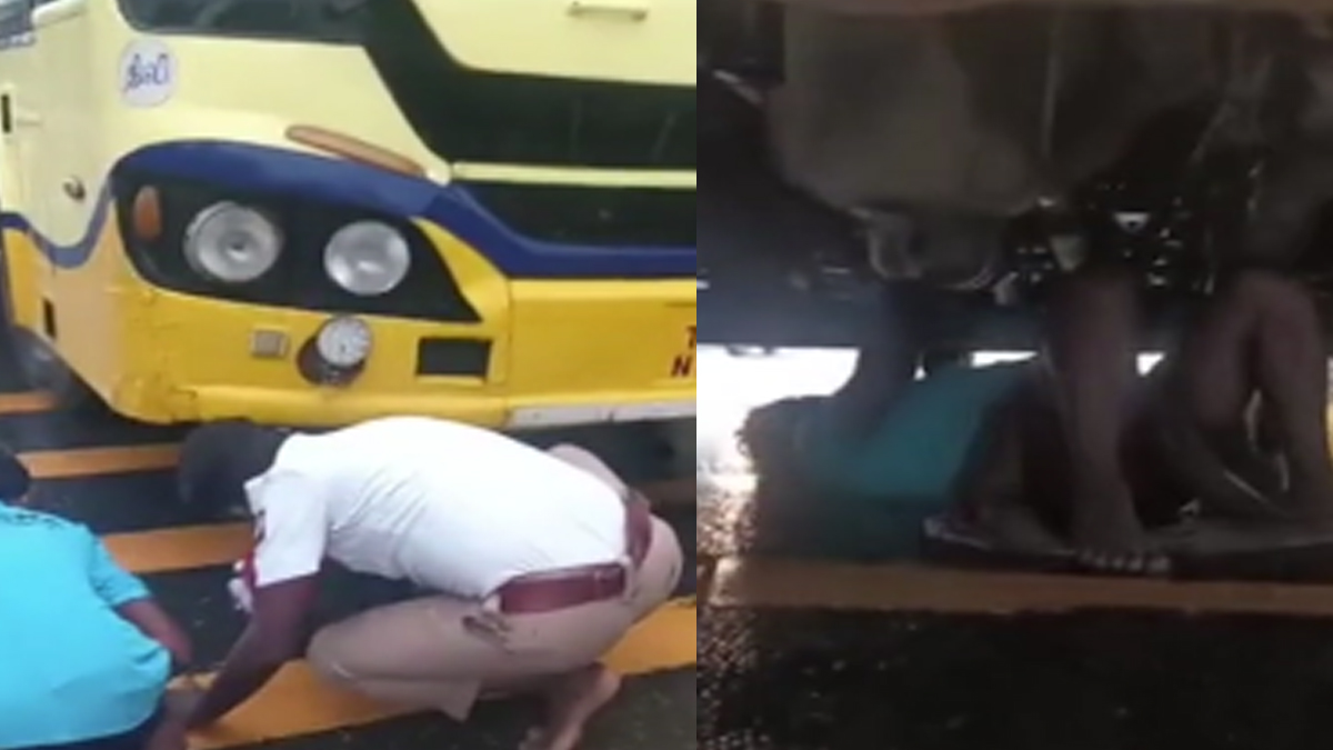 கோவில்பட்டி, சுப்ரமணியபுரம் 4வது தெருவை சேர்ந்தவர் கொம்பையா. இவர் மது போதையில் கோவில்பட்டி நோக்கி வந்த அரசு பேருந்தை வழிமறித்து பேருந்திற்கு அடியில் சென்று அட்ராசிட்டில் ஈடுபட்டார்.
