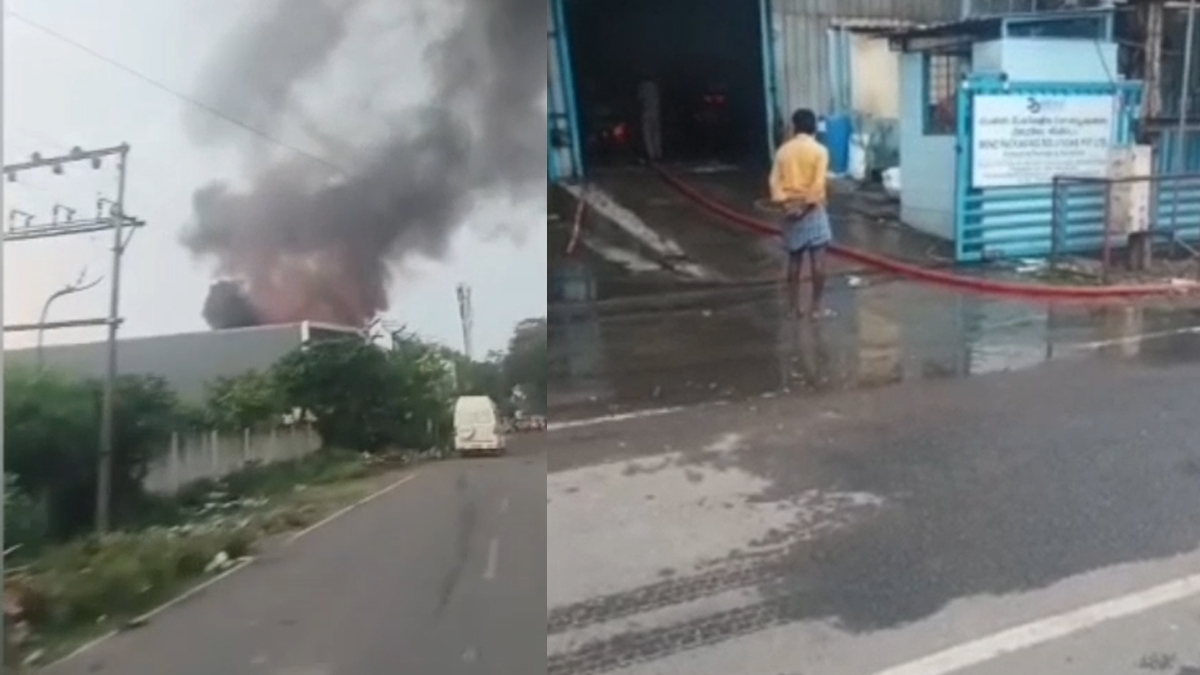 உடனடியாக அந்த தீ மல மல வென பரவி நிறுவனம் முழுவதும் கொழுந்து விட்டு எறிய தொடங்கியது உடனடியாக தகவல் அறிந்து வந்த மறைமலைநகர் மற்றும் மகேந்திரா சிட்டி தீயணைப்பு துறையினர் தண்ணீர் பீச்சி அடித்து தீயை கட்டுக்குள் கொண்டு வரும் பணியில் முழு வீச்சுடன் ஈடுபட்டு வருகின்றனர்