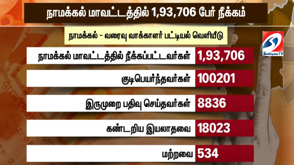 நாமக்கல் வரைவு வாக்காளர் பட்டியல் : ஒரு லட்சத்தி 93 ஆயிரம் பேர் நீக்கம்