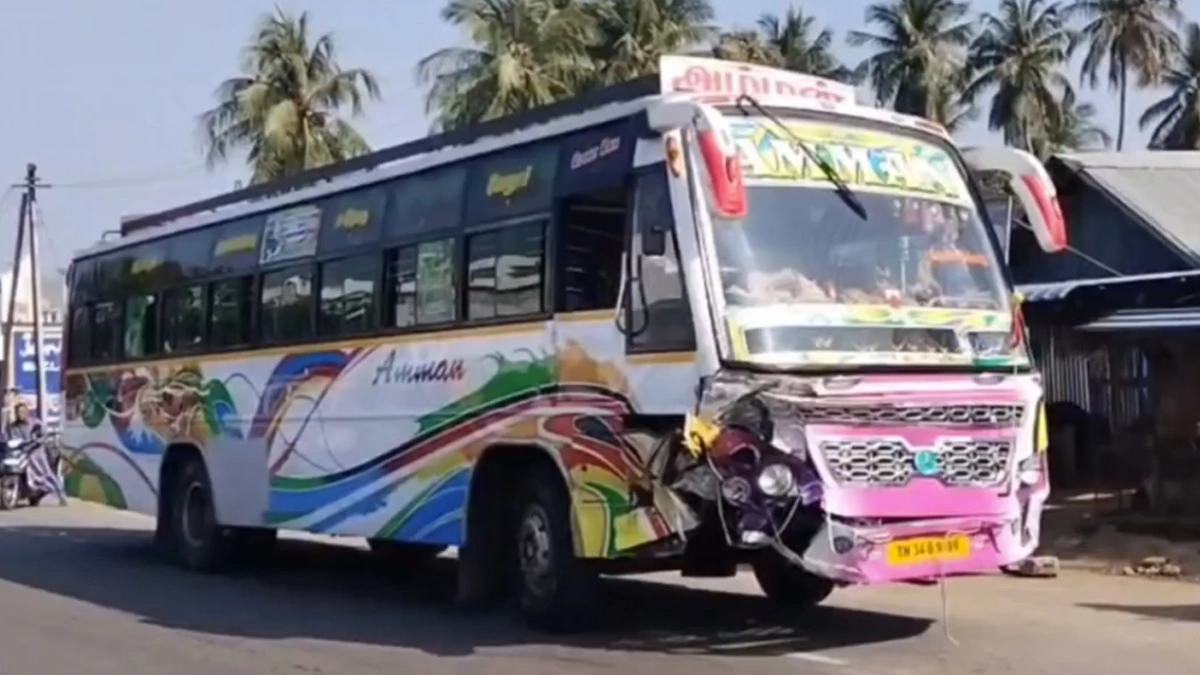 வசந்தபுரம் பகுதியில் முன்னால் சென்று கொண்டிருந்த இருச்சக்கர வாகனம் மீது அந்த தனியார் பேருந்து மோதியது. அதன் பின்னர் கட்டுப்பாட்டை இழந்த பேருந்து சாலையோரத்தில் நிறுத்தப்பட்டிருந்த மினி சரக்கு ஆட்டோவின்மீதும் மோதியது. இந்த விபத்தில் படுகாயமடைந்த கவின்குமார் சம்பவ இடத்திலேயே பரிதாபமாக உயிரிழந்தார். அதிர்ஷ்டவசமாக சக்திவேல் எந்தவித காயங்களும் இன்றி உயிர் தப்பினார்.