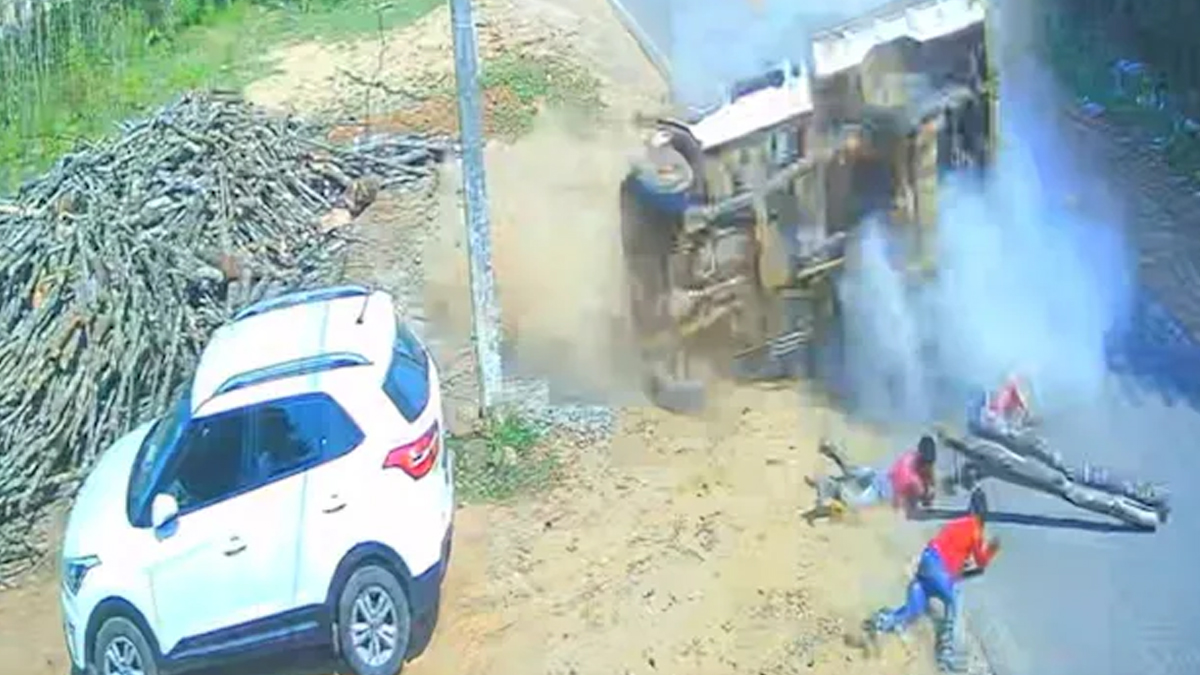 வாகனத்தின் பின்புறத்தில் மூன்று தொழிலாளர்கள் அமர்ந்திருந்தனர். வாகனம் கவிழ்ந்ததும், மூவரும் கீழே தூக்கி வீசப்பட்டனர். இதில் அவர்கள் படுகாயம் அடைந்தனர்.