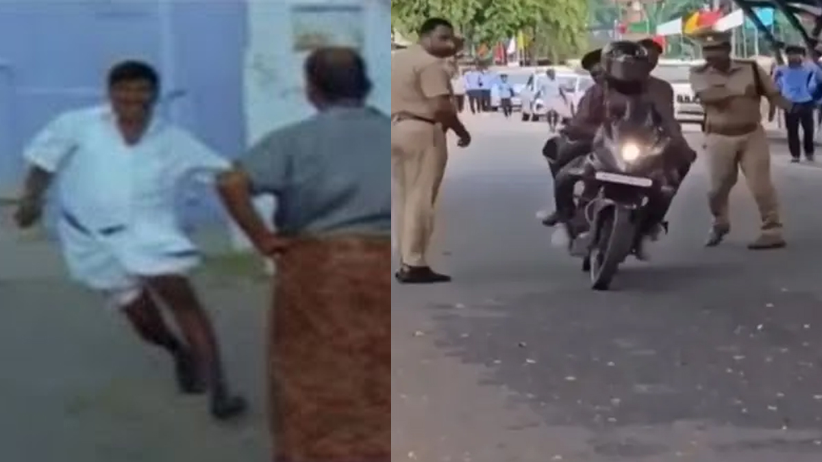 குடியரசு தலைவர் திரௌபதி முர்மு கேரளாவுக்கு வருகை தந்தார். அப்போது அங்கு பாதுகாப்பு ஏற்பாடுகள் தீவிரப்படுத்தப்பட்டது. தடை செய்யப்பட்டிருந்த சாலையில் மோட்டார் சைக்கிளில் மூன்று இளைஞர்கள் போலீசாரை பார்த்து சற்றும் பயப்படாமல் சாதாரணமாக கடந்து சென்றனர். இந்த சம்பவத்தின் காட்சிகள் இப்போது இணையத்தில் வெளியாகி உள்ளது.