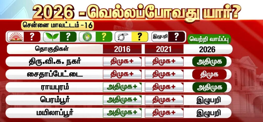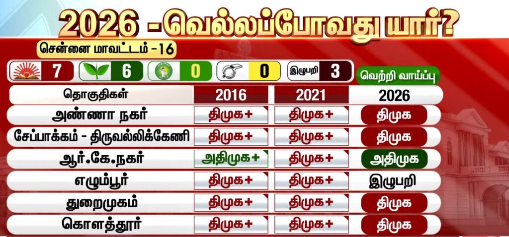 சத்தியம் டிவி மெகா சர்வே 3.0… சென்னை மாவட்டம் கணிப்பு…