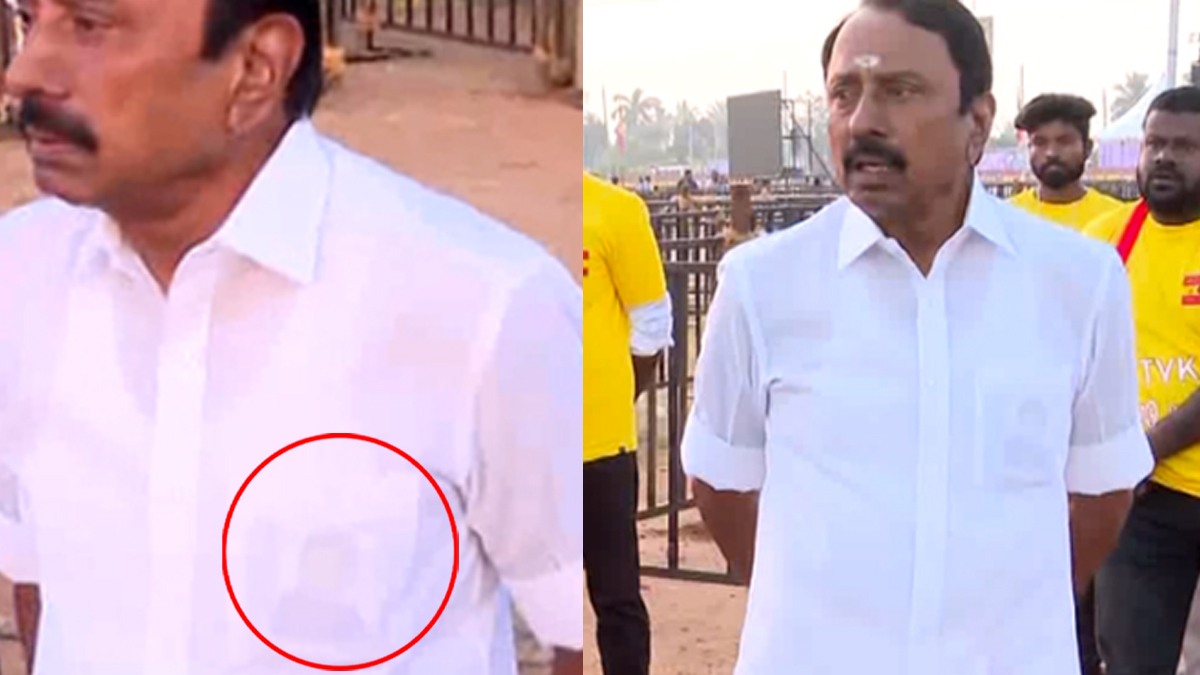 இந்த நிலையில், விஜய் மக்கள் சந்திப்பு நிகழ்ச்சியில் சட்டை பாக்கெட்டில் ஜெயலலிதா படத்துடனும், தவெக கரை வேட்டியுடன் செங்கோட்டையன் கலந்து கொண்டுள்ளார். இதுதொடர்பான புகைப்படங்கள் வைரலாகி வருகிறது.