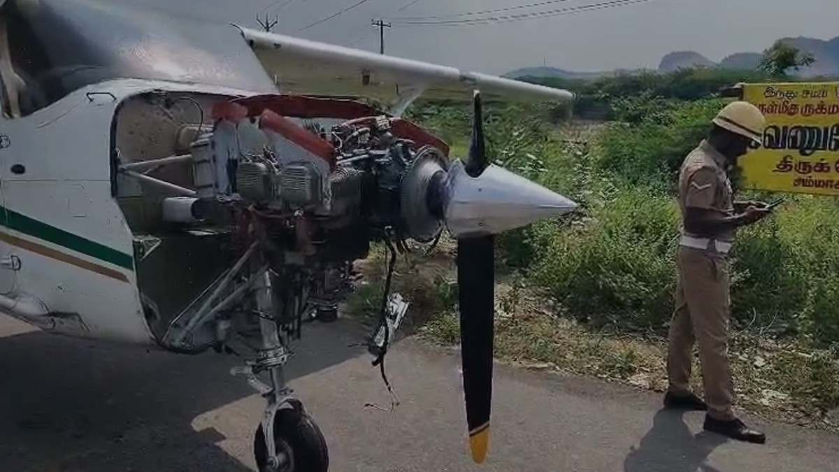 புதுக்கோட்டை மாவட்டம் நார்த்தாமலை அருகே உள்ள அம்மா சத்திரத்தில், சிறிய ரக விமானம் ஒன்று தொழில்நுட்பக் கோளாறு காரணமாக தரையிறக்கம் செய்யப்பட்டுள்ளது. விமானத்தின் பாகம் சேதமடைந்ததால் அந்த விமானத்தை ஓட்டி வந்த விமானி சாதுரியமாக செயல்பட்டு விமானத்தை தரையிறக்கியுள்ளார்.