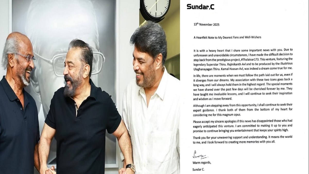 ரஜினியின் 173-வது படத்தை சுந்தர் சி இயக்குவதாக இருந்த நிலையில் இயக்குநர் சுந்தர் சி அறிவிப்பு ஒன்றை வெளியிட்டுள்ளார். அதாவது, ரஜினியின் 173வது படத்திலிருந்து தவிர்க்க முடியாத காரணங்களால் விலகுவதாக தெரிவித்துள்ளார்.