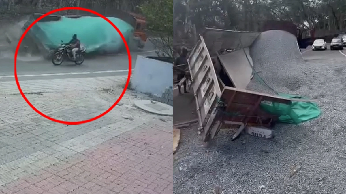 விபத்தின் காரணமாக, லாரியில் ஏற்றப்பட்டிருந்த ஜல்லி கற்கள் சுக்குநூறாக உடைந்து சாலை முழுவதும் பரவி கிடந்ததால், அந்த பகுதியில் போக்குவரத்து கடுமையாக பாதிக்கப்பட்டது. மேலும், இந்த விபத்துக்கான சிசிடிவி காட்சிகள் தற்போது வெளியாகி, அதிர்ச்சியை ஏற்படுத்தி உள்ளது.
