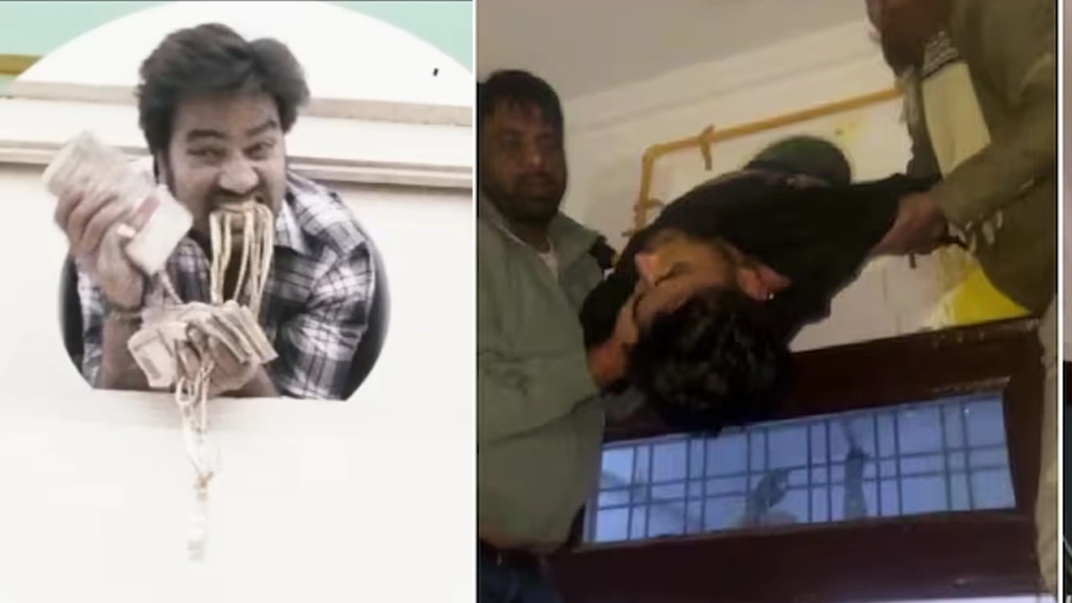 ராஜஸ்தான் மாநிலம் கோட்டாவைச் சேர்ந்த சுபாஷ் குமார் ராவத் என்பவர் தனது மனைவியுடன் கோவிலுக்கு சென்று விட்டு வீட்டிற்கு திரும்பியுள்ளார். அப்போது, அவரது வீட்டின் எக்ஸாஸ்ட் வழியாக ஒருவர் சிக்கி கொண்டிருப்பதை பார்த்து இருவரும் அதிர்ச்சியடைந்தனர்.