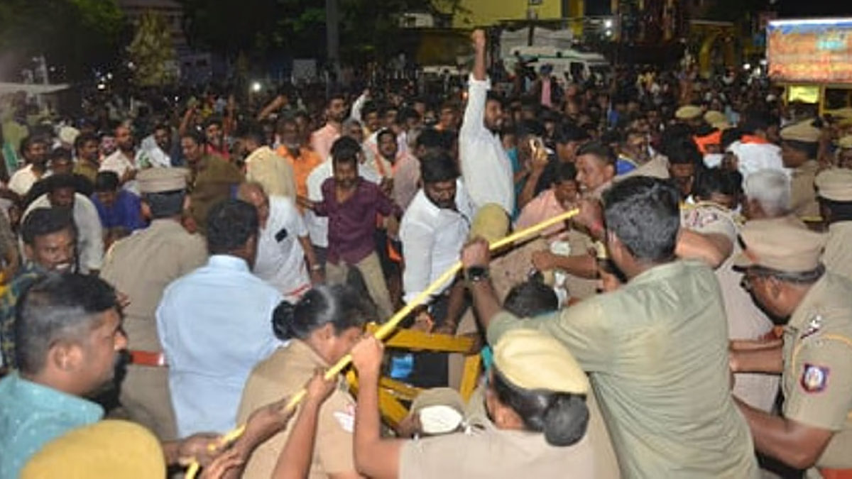 திருப்பரங்குன்றம் மலை உச்சியில் உள்ள கார்த்திகை தீபத்தூணில் அறநிலைத்துறை தீபம் ஏற்றாததை கண்டித்து இந்து முன்னணி பாஜக மற்றும் பல்வேறு இந்து அமைப்புகள் மலை மீதுள்ள தீபத் தூணுக்கு செல்ல பழனியாண்டவர் கோயில் வழியாக முயன்றனர்.