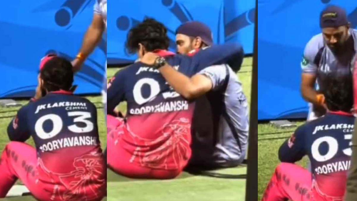 ராஜஸ்தான் அணியின் 15 வயது இளம் தொடக்க வீரர் வைபவ் சூர்யவன்ஷி, போட்டி முடிந்ததும் பவுண்டரி லைன் அருகே தனியாக அமர்ந்து அழுதுக்கொண்டிருந்தார். இந்த காட்சி ரசிகர்களின் இதயத்தை உருக்கியது. தனது அணியின் தோல்வியை மனதில் கொண்டு சோகத்தை கட்டுப்படுத்த முடியாமல் அவர் உடைந்து போனார். இதைக் கண்ட கொல்கத்தா அணியின் சப்போர்ட் ஸ்டாஃப் ஒருவர் சென்று அவரை ஆறுதல் கூறிய தருணம் சமூக வலைதளங்களில் வைரலாகியுள்ளது.
