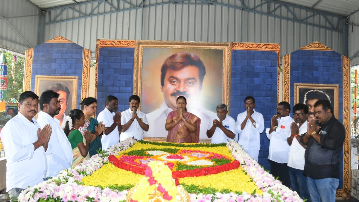 இந்நிலையில் இன்று விஜயகாந்தின் 2-ம் ஆண்டு நினைவு தினம் அனுசரிக்கப்படுகிறது. இதனையொட்டி சென்னை கோயம்பேட்டில் உள்ள விஜயகாந்தின் நினைவிடத்தில் கட்சி தொண்டர்களும் பல்வேறு அரசியல் கட்சித் தலைவர்களும் நினைவிடத்தில் மரியாதை செலுத்தினார்.