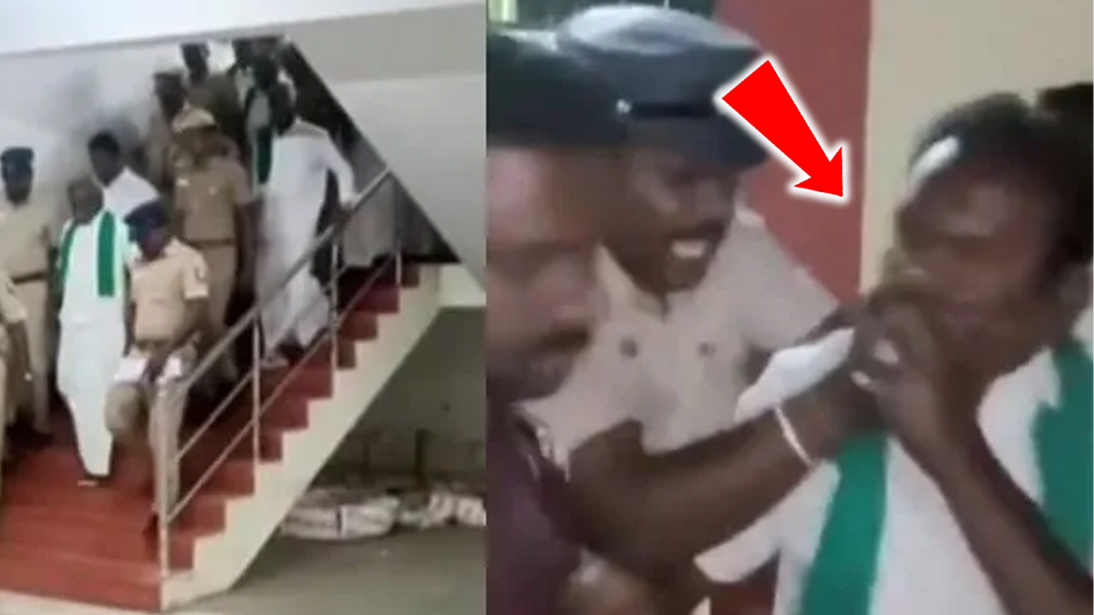 இதையடுத்து அவரது வீட்டுக்கு விரைந்த போலீசார் பி ஆர் பாண்டியனை அழைத்து வந்தனர். வீட்டுக்குள் சென்ற போலீசார் அவரை வீட்டின் வெளியில் நின்ற வேனிற்கு அழைத்து வந்த போது உடன் அமைதியாக நடந்து வந்துகொண்டிருந்த அவரது ஆதரவாளர் ஒருவர் திடீரென கோஷம் எழுப்பினார்.