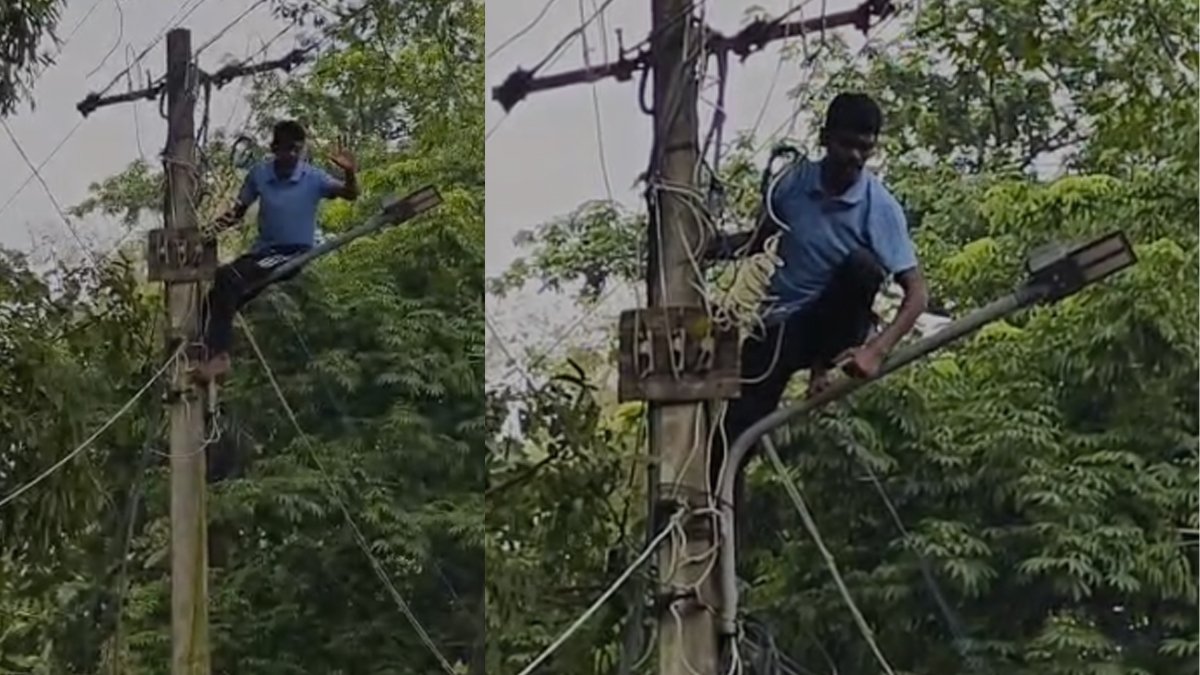வேலை கேட்டு மின் கம்பத்தில் ஏறிய இளைஞரால் பரபரப்பு